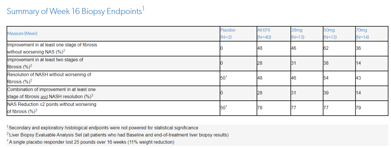▲接受不同剂量EFX治疗的患者在第16周时的肝脏组织学结果(图片来源:参考资料[1])