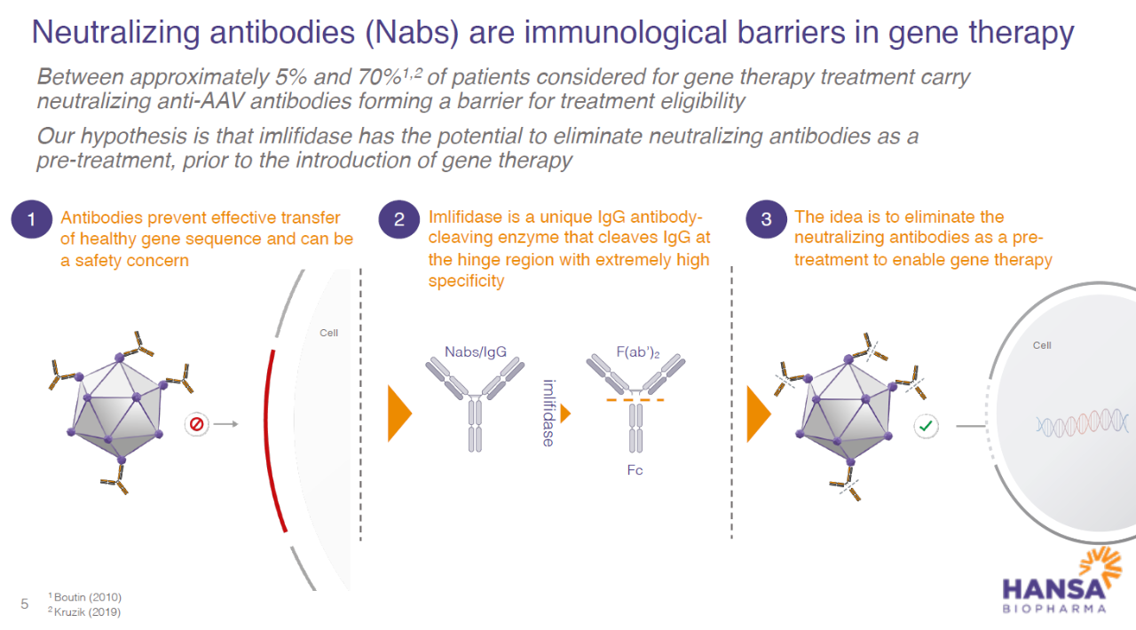 “作为打造我们的基因治疗引擎的核心之一,Sarepta的目标就是找到科学的解决方案,将我们潜在的救命疗法带给最大数量的罕见病患者,”Sarepta Therapeutics总裁兼首席执行官Doug Ingram先生说:"目前基因疗法的局限之一是无法治疗那些已有AAV载体中和抗体的患者。Hansa公司的技术显示了清除靶向AAV的IgG抗体的能力。如果成功的话,它可能帮助我们将基因疗法提供给那些因为已有中和抗体而无法接受治疗的DMD和LGMD患者。”