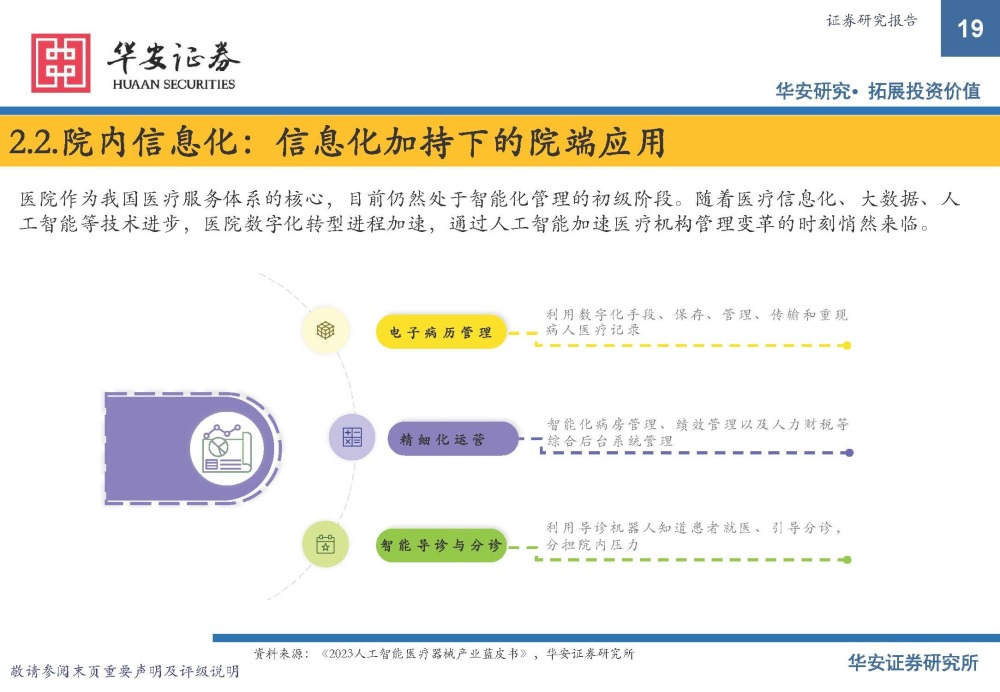 医院作为我国医疗服务体系的核心,目前仍然处于智能化管理的初级阶段。随着医疗信息化、大数据、人 工智能等技术进步,医院数字化转型进程加速,通过人工智能加速医疗机构管理变革的时刻悄然来临。
