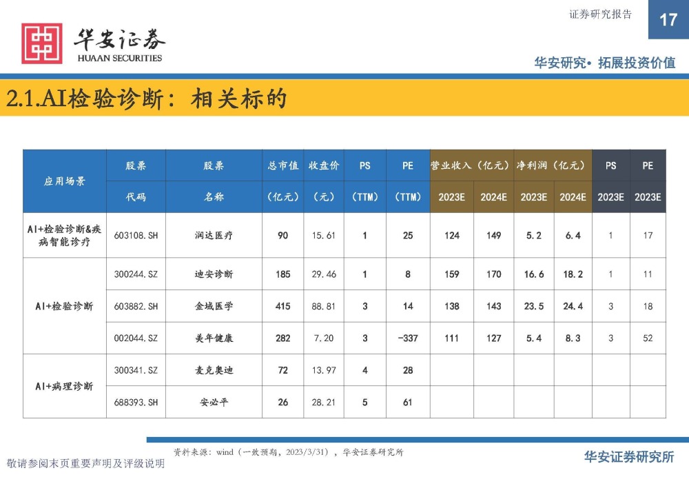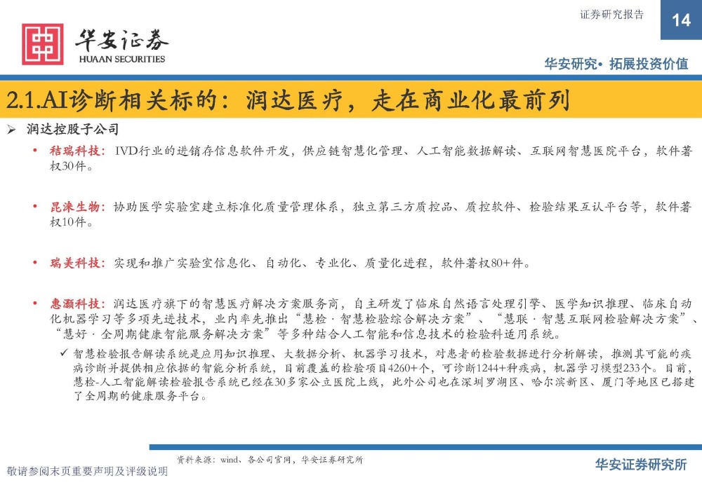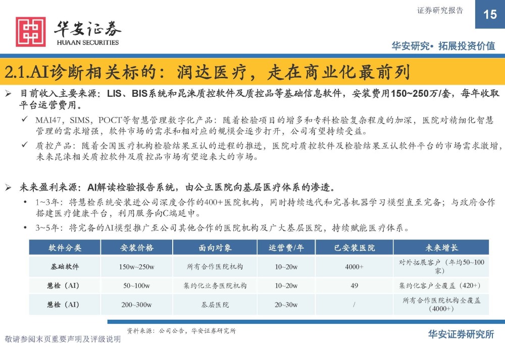 AI诊断相关标的:润达医疗,走在商业化最前列