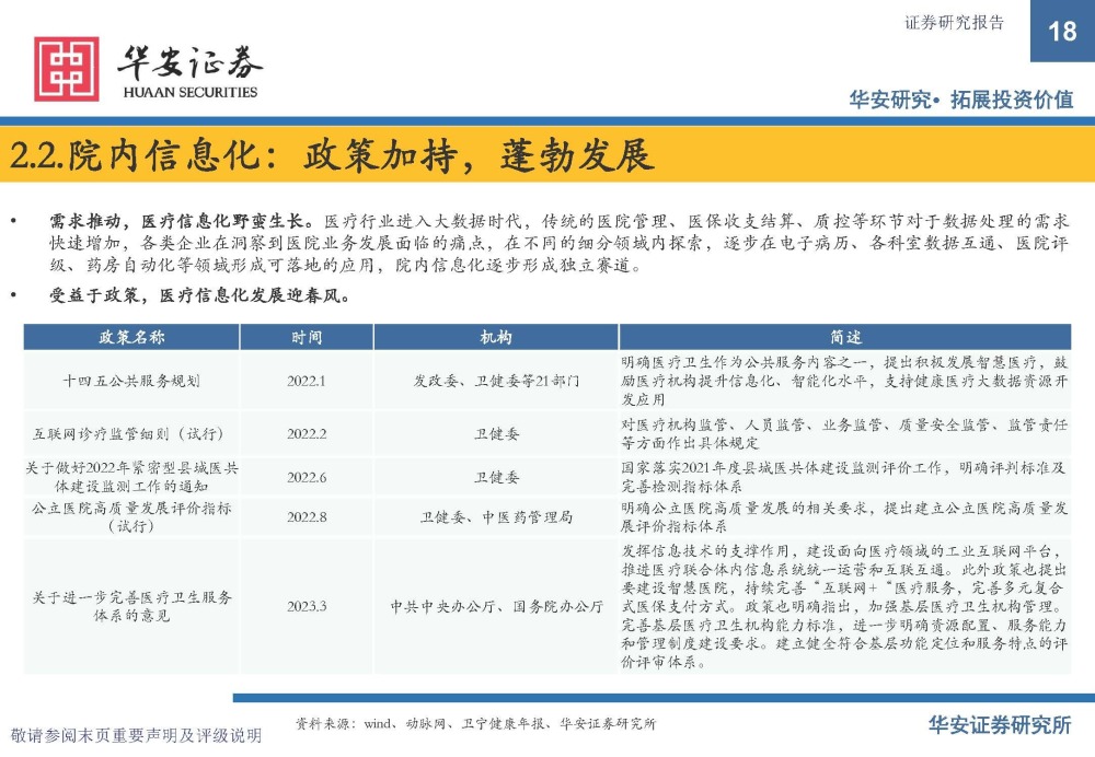 院内信息化:政策加持,蓬勃发展