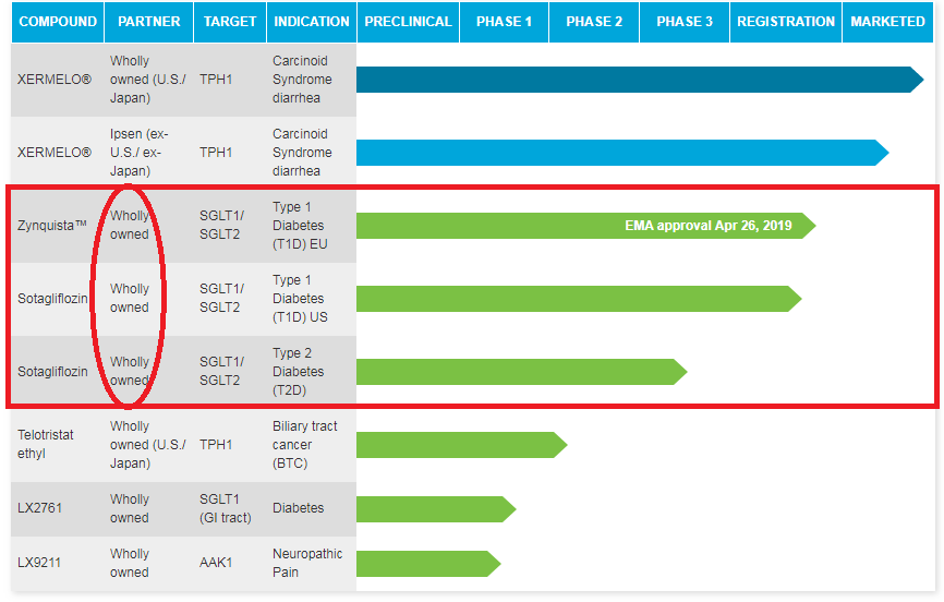 Sotagliflozin是一种SGLT-1/SGLT-2双效抑制剂,开发用于T1D和T2D。2015年11月,赛诺菲与Lexicon达成17亿美元协议,获得sotagliflozin除日本以外的全球权利。去年3月,该药治疗T1D遭美国FDA拒绝批准,原因是与安慰剂相比酮症酸中毒(DKA)事件发生率较高。在欧盟,监管机构认可了DKA是一种常见糖尿病并发症且在T1D中发生率比T2D高这一事实,对sotagliflozin的积极效益风险表示了肯定,并于去年4月批准该药治疗T1D。同年7月,赛诺菲宣布终止合作。