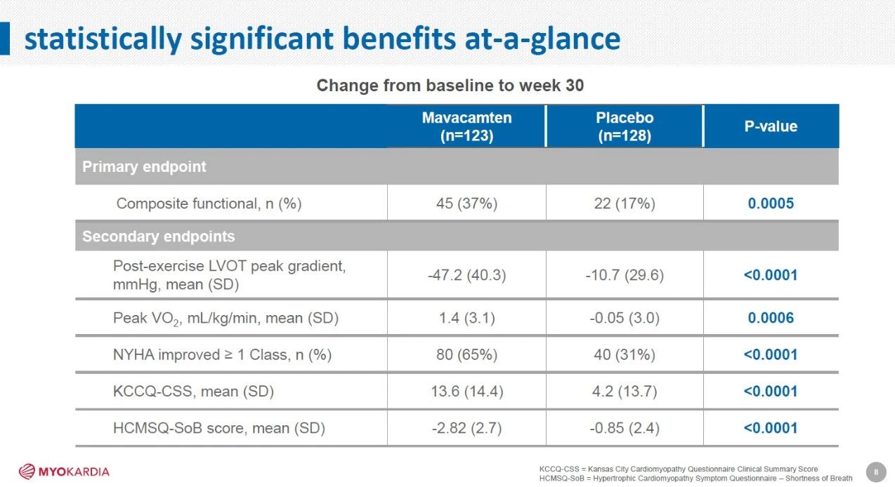 ▲Mavacamten的疗效数据(图片来源:MyoKardia公司官网)