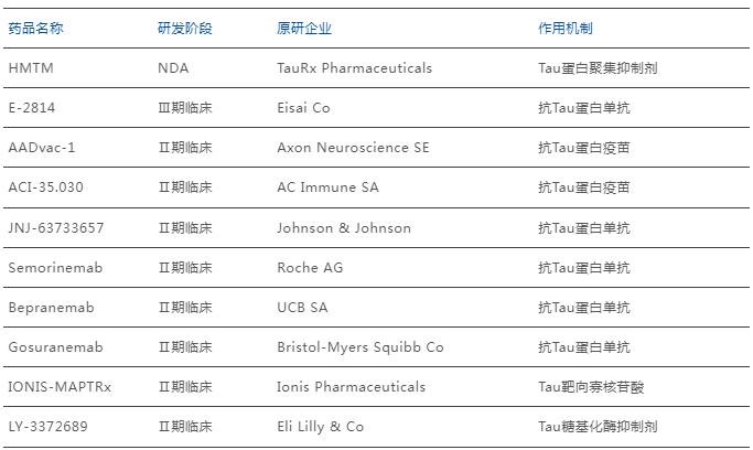 表3 全球进入中后期研究阶段的Tau蛋白靶向AD在研药物