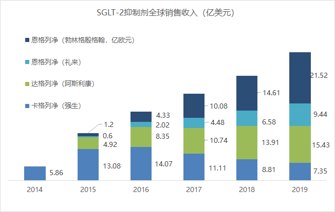公开数据显示,目前获批的SGLT-2抑制剂中,恩格列净市场份额最高,2019年全球销售额大约为34亿美元。2020上半年,恩格列净全球销售额近20亿美元。