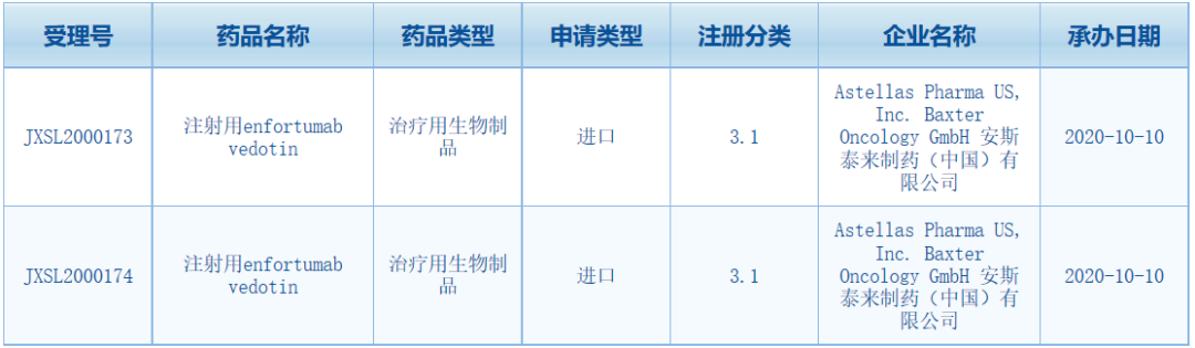 今日,中国国家药监局(NMPA)药品审评中心(CDE)公示,安斯泰来(Astellas)在中国提交2项注射用enfortumab vedotin的临床试验申请,并获得受理。这是一款靶向Nectin-4的抗体偶联药物(ADC),曾获得FDA授予的突破性疗法认定和优先审评资格,已于2019年底在美国获批上市,用于治疗局部晚期或转移性尿路上皮癌患者。值得一提的是,此次是该产品首次在中国申报临床。
