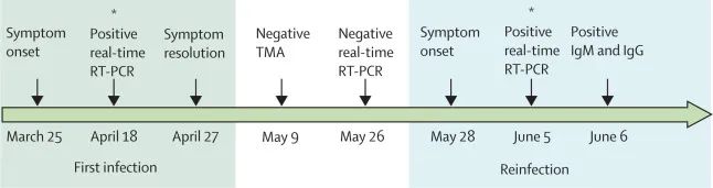 ▲该名患者两次发病、检测的时间过程(图片来源:参考资料[1])