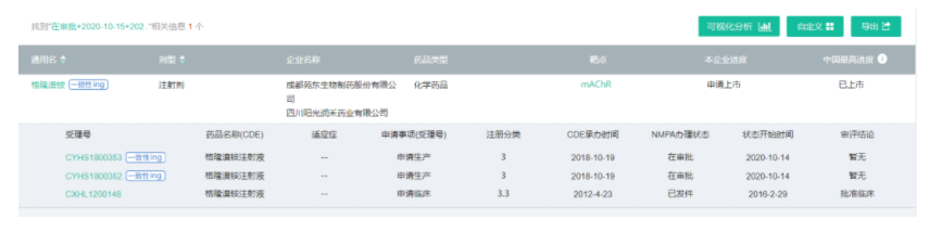 10月14日,苑东生物3类仿制药格隆溴铵注射液上市申请进入“在审批”阶段,有望于近期正式获批,成为国内继恒瑞医药之后第2家该药品获批厂家。