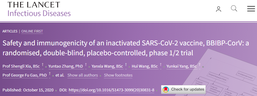 这是继武汉生物制品研究所及合作团队在《美国医学会杂志》(JAMA)发表新冠灭活疫苗临床试验数据后,中国生物发布的又一新冠灭活疫苗临床试验数据。相比之下,此次BBIBP-CorV还额外在60岁及以上人群中获得了数据。