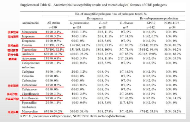 CRE血流感染病死率高,感染源的控制、早期识别相关危险因素以及恰当的抗菌药物治疗是患者预后的关键。