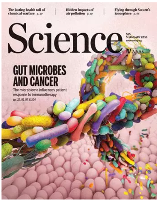 ▲“肠道微生物和癌症”登上《科学》封面(图片来源:V. Altounian / Science)