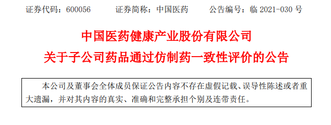 5月13日,中国医药公告,近日,公司下属全资子公司海南通用三洋获得国家药监局核准签发的三份注射用头孢他啶《药品补充申请批准通知书》,该药品通过仿制药质量和疗效一致性评价。