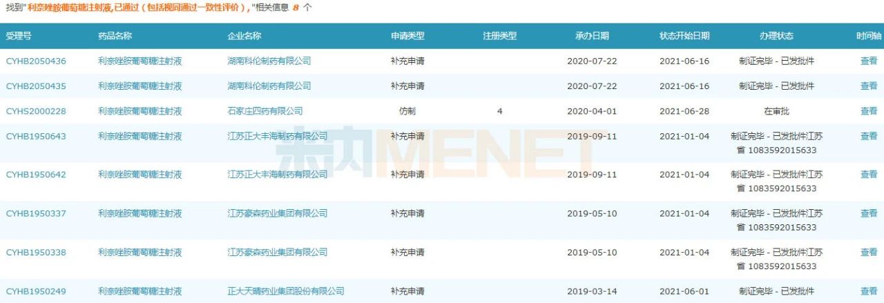 一致性评价方面,利奈唑胺葡萄糖注射液有5家企业过评,其中,湖南科伦制药、江苏正大丰海制药、江苏豪森药业集团、正大天晴药业集团均以补充申请获批过评,石家庄四药以仿制4类获批,视同过评。目前,四川美大康佳乐药业、浙江医药股份有限公司新昌制药厂等3家企业的一致性评价补充申请在审评审批中;扬子江药业集团上海海尼药业、四川科伦药业、华夏生生药业等4家企业以仿制4类提交上市申请在审评审批中,获批后视同过评。