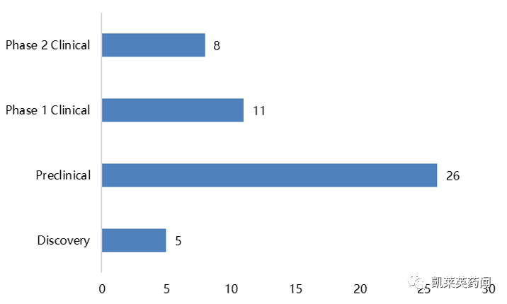 由于其在免疫调节中的重要作用,OX40靶点目前被用于开发自身免疫类疾病和抗肿瘤疾病之中。且随着相关靶点机理不断被阐释清晰,近年来针对该靶点的研发热情逐步提升。目前,全球针对OX40靶点的在研管线共50个,大部分仍集中于临床前阶段。