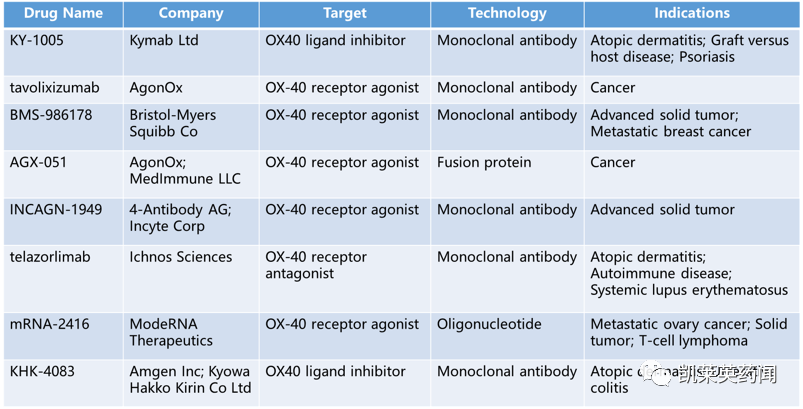 目前,全球处已进入临床II期阶段的OX40在研管线的具体情况如下: