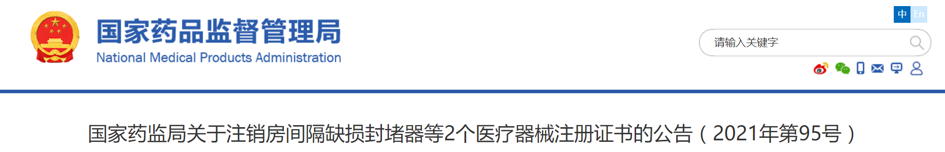 7月21日,国家药监局发布国家药监局关于注销房间隔缺损封堵器等2个医疗器械注册证书的公告(2021年第95号)。