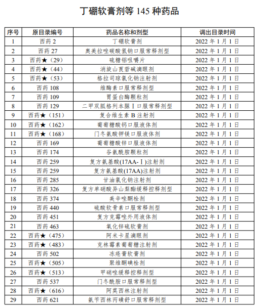 丁硼软膏剂等145种药品于2022年1月1日起不再纳入四川省基本医疗保险、工伤保险和生育保险支付范围。上述药品调出前,继续按规定予以支付。