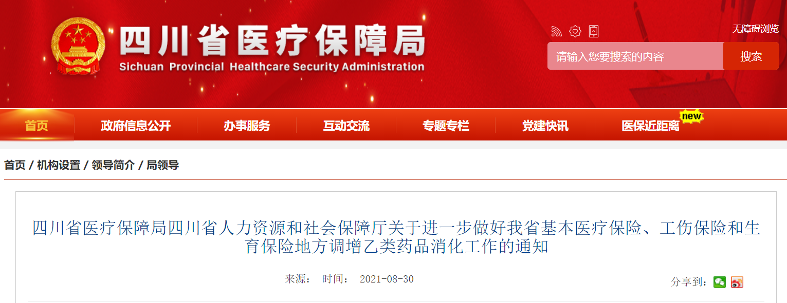 同日,四川省医保局发布《关于进一步做好我省基本医疗保险、工伤保险和生育保险地方调增乙类药品消化工作的通知 川医保规〔2021〕15号》。