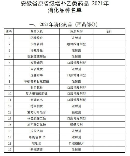 此外,值得注意的是,安徽省有10个药品纳入《国家基本医疗保险、工伤保险和生育保险药品目录》,于2021年3月1日按国家规定执行。
