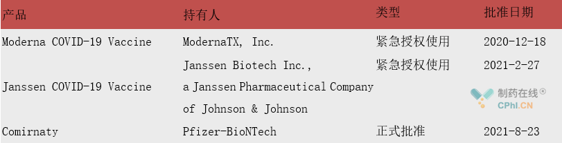FDA批准或紧急授权使用的新冠疫苗