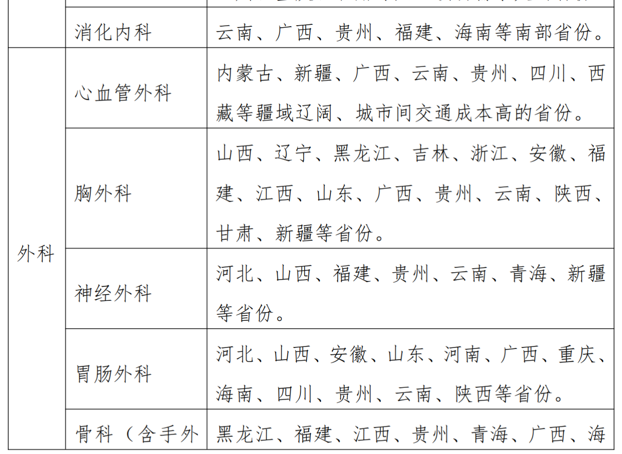 重点支持各省针对性加强心血管外科、产科、骨科(含手外科、脊柱外科)、麻醉、儿科、精神科及病理科、检验科、医学影像科等平台专科建设。