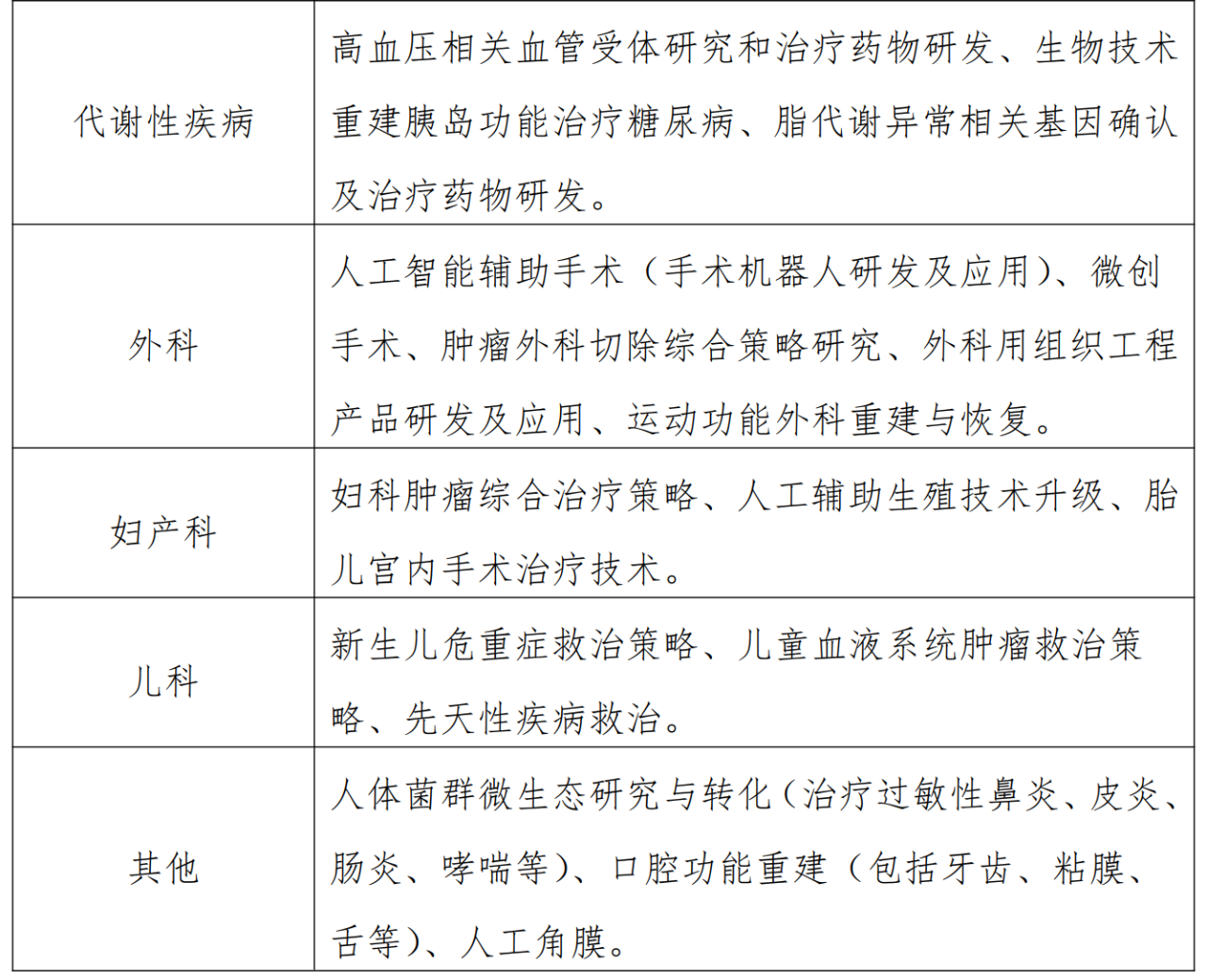 在这份文件中,多个器械领域成为重要发力点,尤其是具备专科特色和核心竞争力的前沿技术项目。