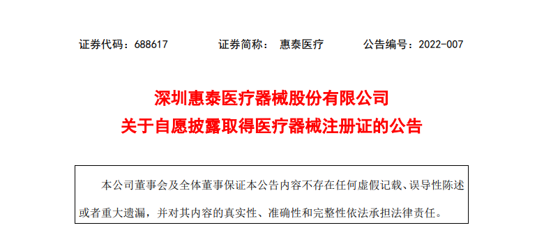 3月3日,惠泰医疗发布公告称,其全资子公司湖南埃普特医疗器械有限公司外周球囊扩张导管获得医疗器械注册证。
