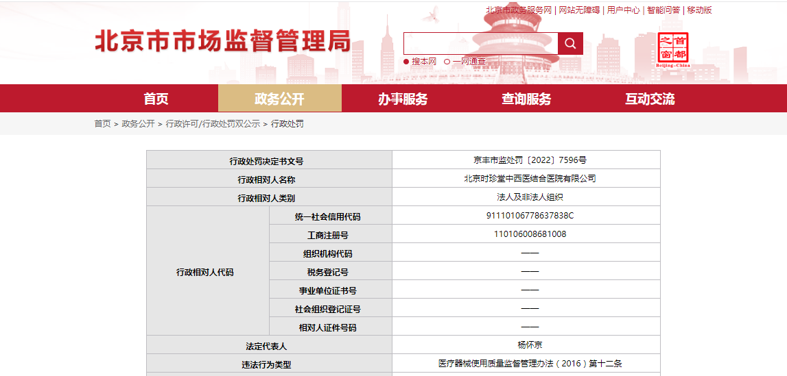 2022年4月13日,北京市市场监督管理局执法人员在对北京时珍堂中西医结合医院经营场所进行现场检查时,在北京时珍堂中西医结合医院的核酸检测点发现正在使用的样本保存液(规格:1ml/支;货号:CWY076M;产品批号03121;生产日期:2021-01-31;有效期至:2022-01-30;【医疗器械备案凭证编号】苏泰械备20200064号)超过保质期。