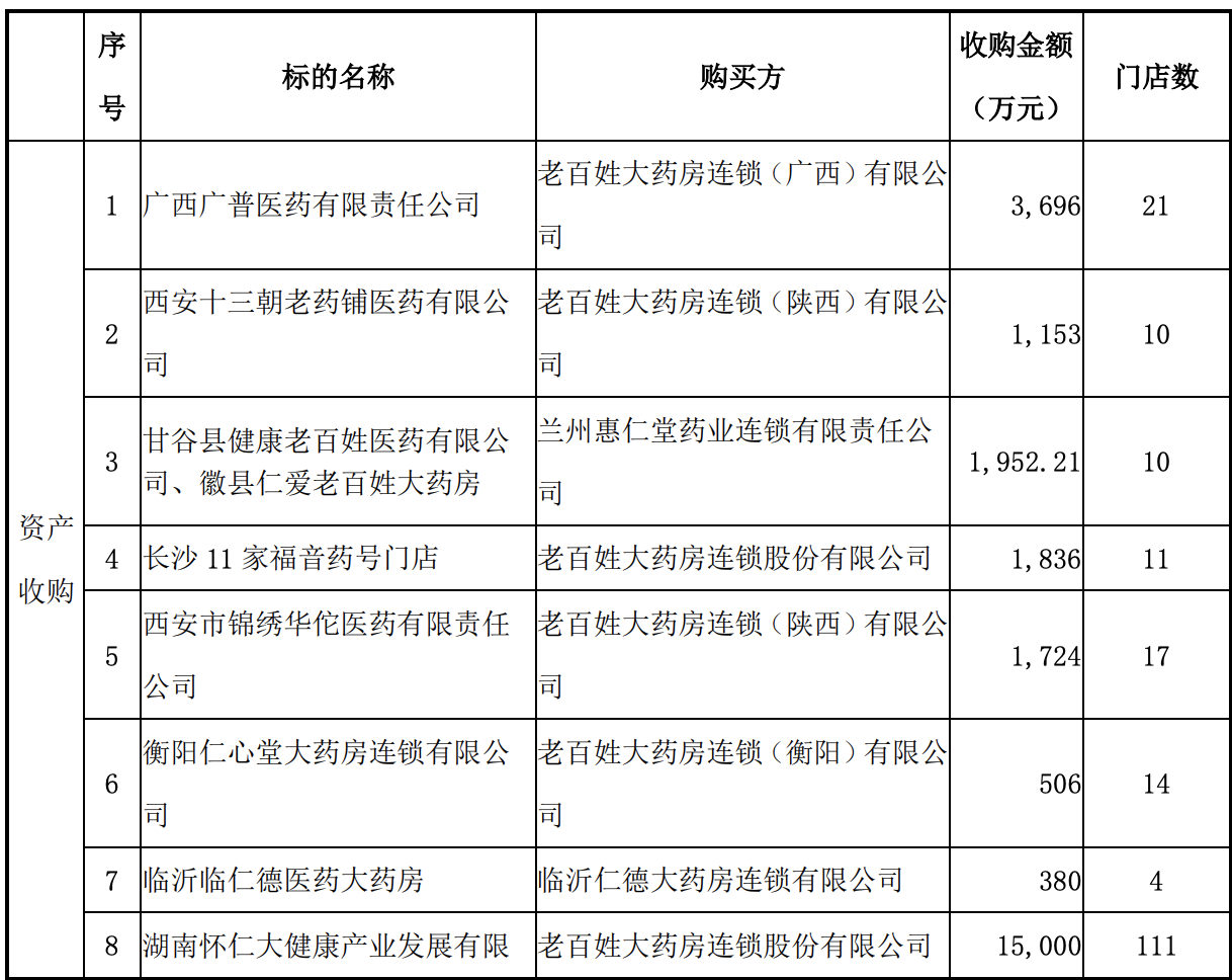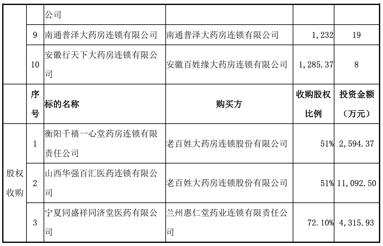 老百姓2019年对外投资情况