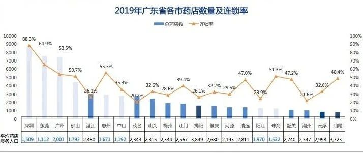 受人口、经济等因素影响,广东省各地药品零售市场差距较大。