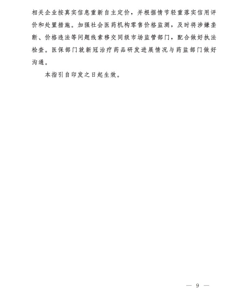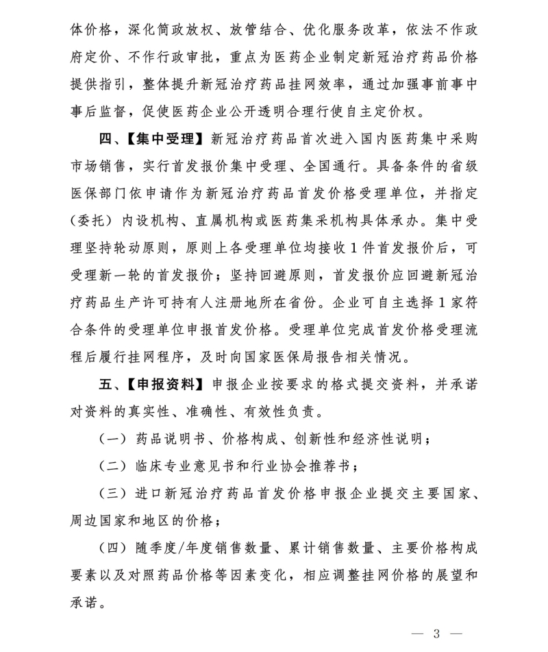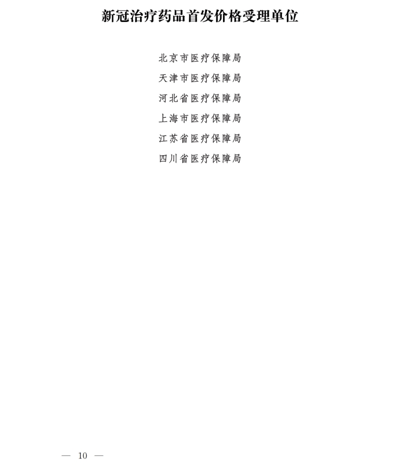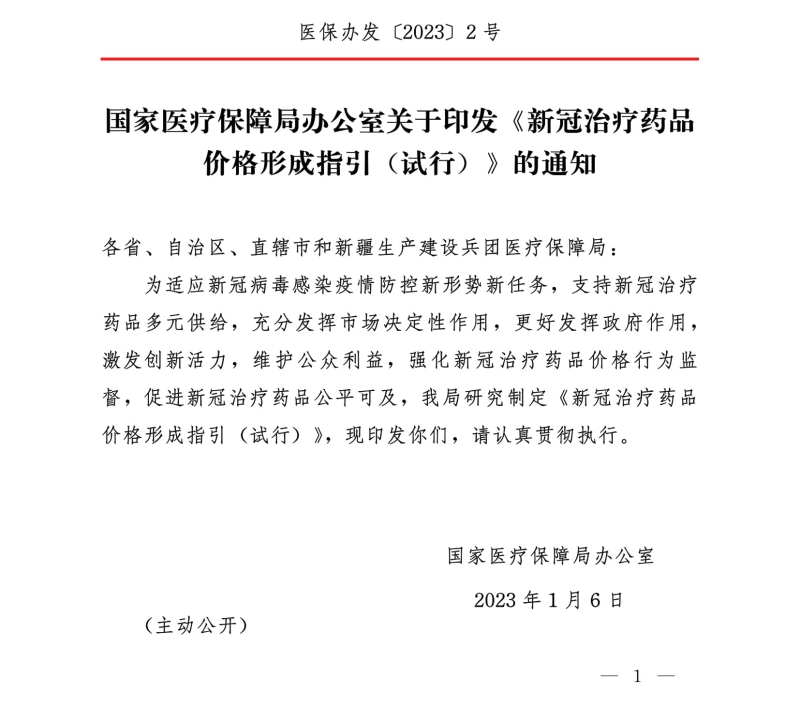 医保局印发新冠治疗药品价格形成指引(试行)