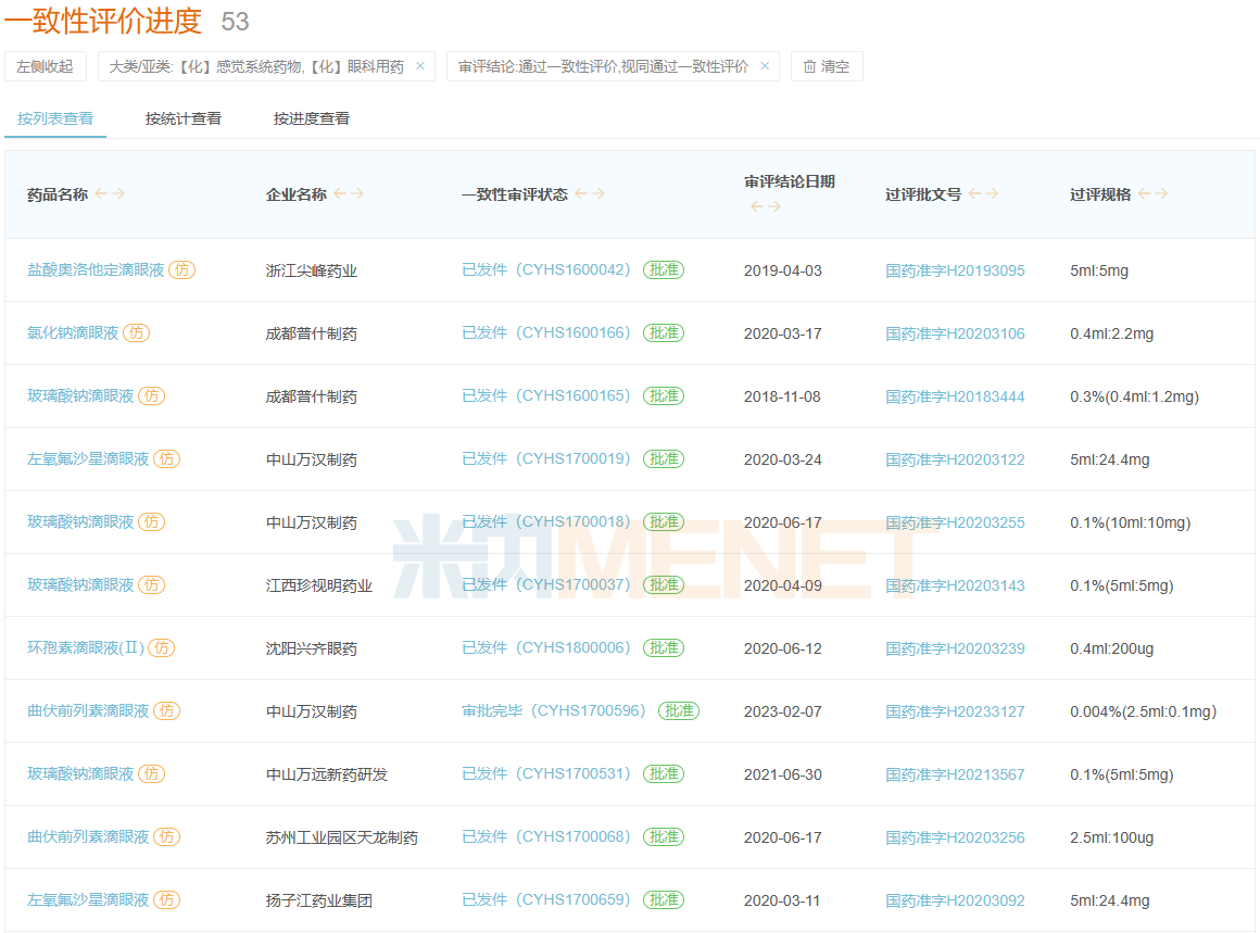 今年以来,眼科用药已有8个产品(13个受理号)均以仿制4类报产获批上市,视同过评。