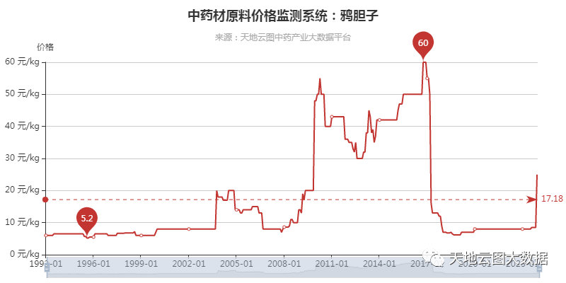 影响中药材品种行情的内因,很大程度上要看原料供应量和原料需求增量的关系。从鸦胆子历史行情变化可以看到: