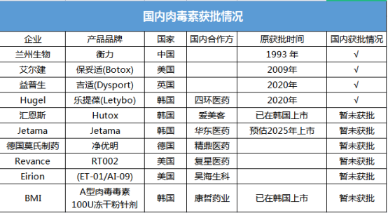 在中国内地,国家相关监管部门对肉毒素产品的管制非常严格,市场准入门槛极高,从2009年美国艾尔建生产的第一款肉毒素进入中国算起,十三年间国内获批上市的肉毒素产品仍只有四款,分别为艾尔建旗下的保妥适、兰州生物的衡力、Hugel的乐提葆和益普生的吉适,国产肉毒素仅衡力一款产品。