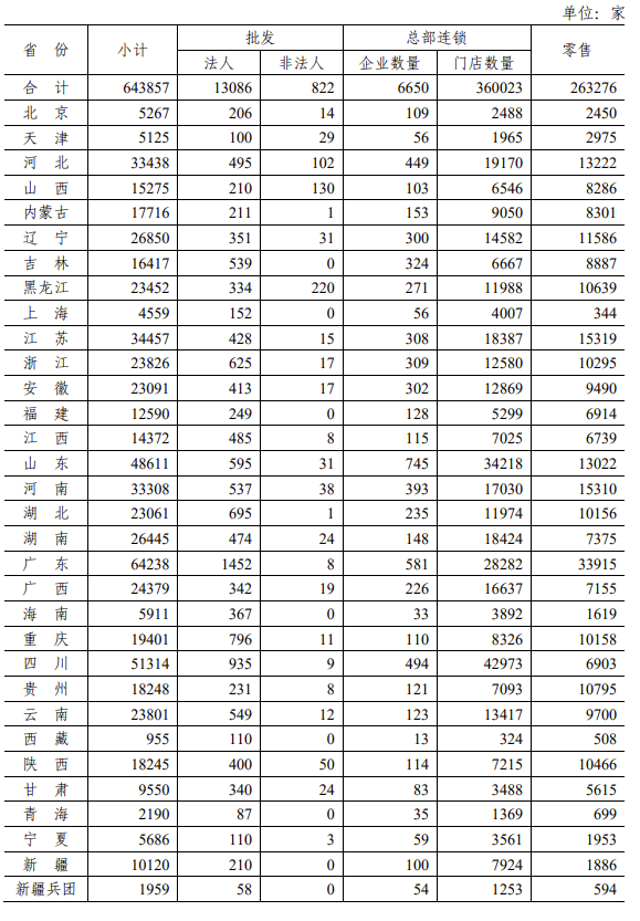 统计数据显示:截至2022年12 月底,全国共有《药品经营许可证》持证企业 643857家。其中,批发企业13908家,零售连锁总部 6650 家,零售连锁门店 360023家,单体药店 263276 家。