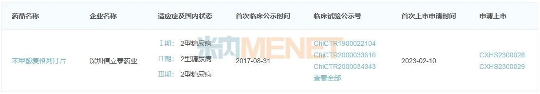 1类新药苯甲酸复格列汀片为DPP-4抑制剂,用于治疗2型糖尿病,该新药2017年进入临床,2023年提交上市申请。米内网数据显示,2022年在重点省市公立医院终端糖尿病用药市场,DPP-4抑制剂为TOP3小类,市场份额超过12%,目前畅销品种不多,西格列汀和利格列汀合计占了八成以上市场。