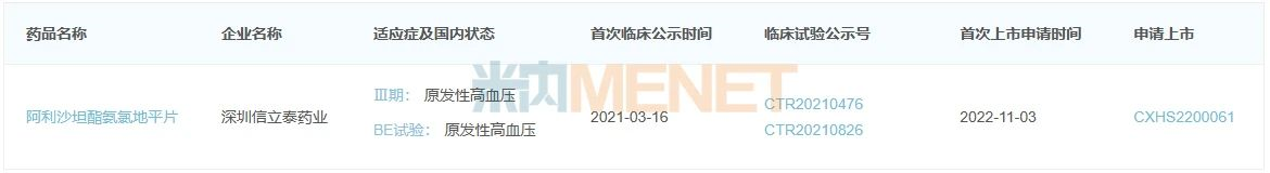 信立泰已上市的作用于肾素-血管紧张素系统的药物有阿利沙坦酯片、盐酸贝那普利片以及奥美沙坦酯片。其中阿利沙坦酯片是1.1类新药,公司在2012年从艾力斯引进,据悉该新药的制剂专利保护期到2028年,该新药从2017年起进入国家医保目录,现为2022版国家医保谈判目录乙类品种,限用于轻、中度原发性高血压的治疗。而仿制药奥美沙坦酯片和盐酸贝那普利片已先后中标第二批、第五批国采。