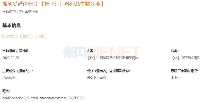 在研创新药方面,今年2月,扬子江药业第2款1类新药盐酸妥诺达非片(曾用名:盐酸优克那非片)的上市申请获得CDE承办受理,这是一款PDE5A抑制剂,用于治疗勃起功能障碍。米内网数据显示,2021年三大终端六大市场(统计范围详见本文末)主流抗ED药物的合计销售规模接近60亿元,其中零售药店终端(城市实体药店+网上药店)占比达97%。