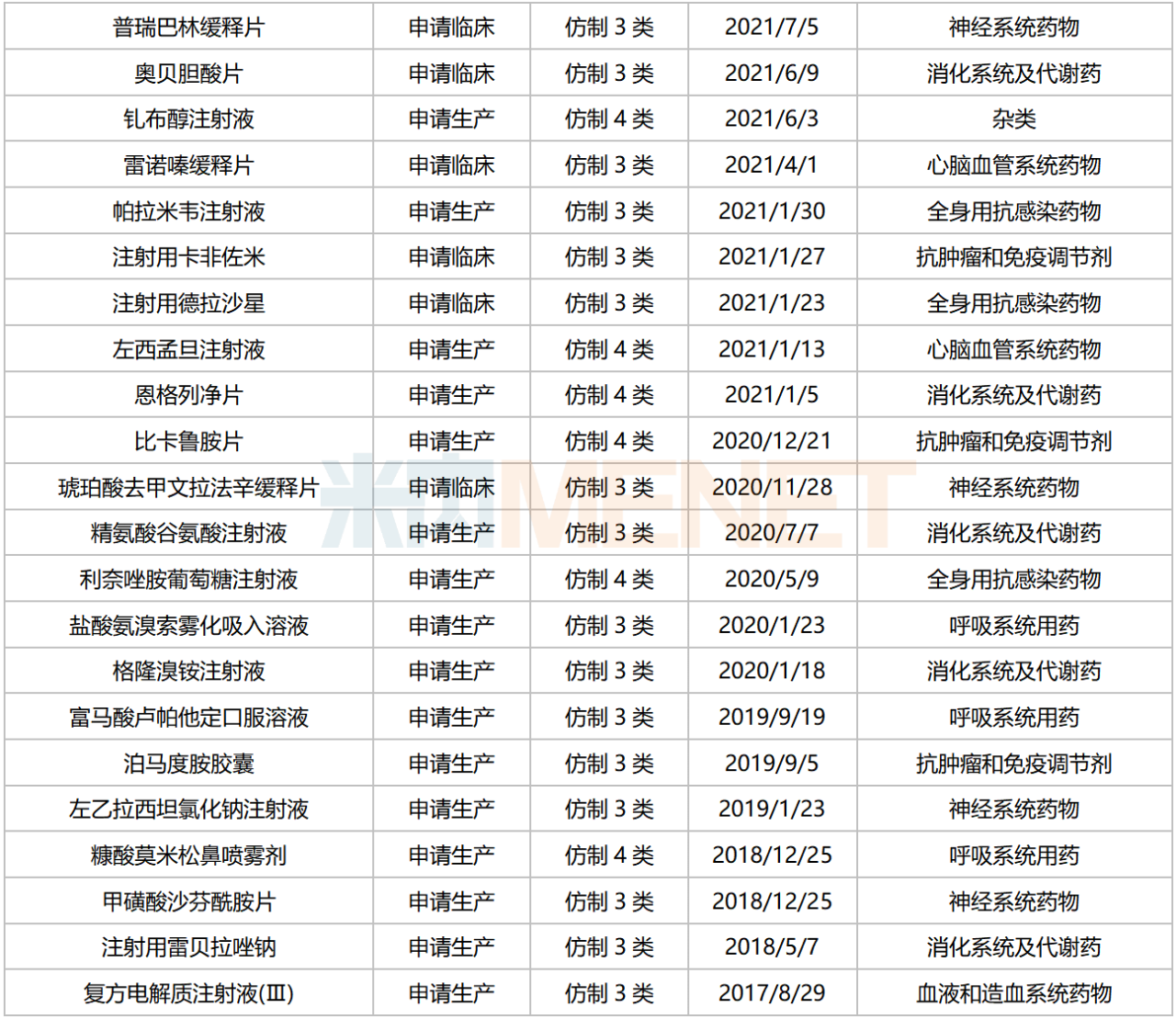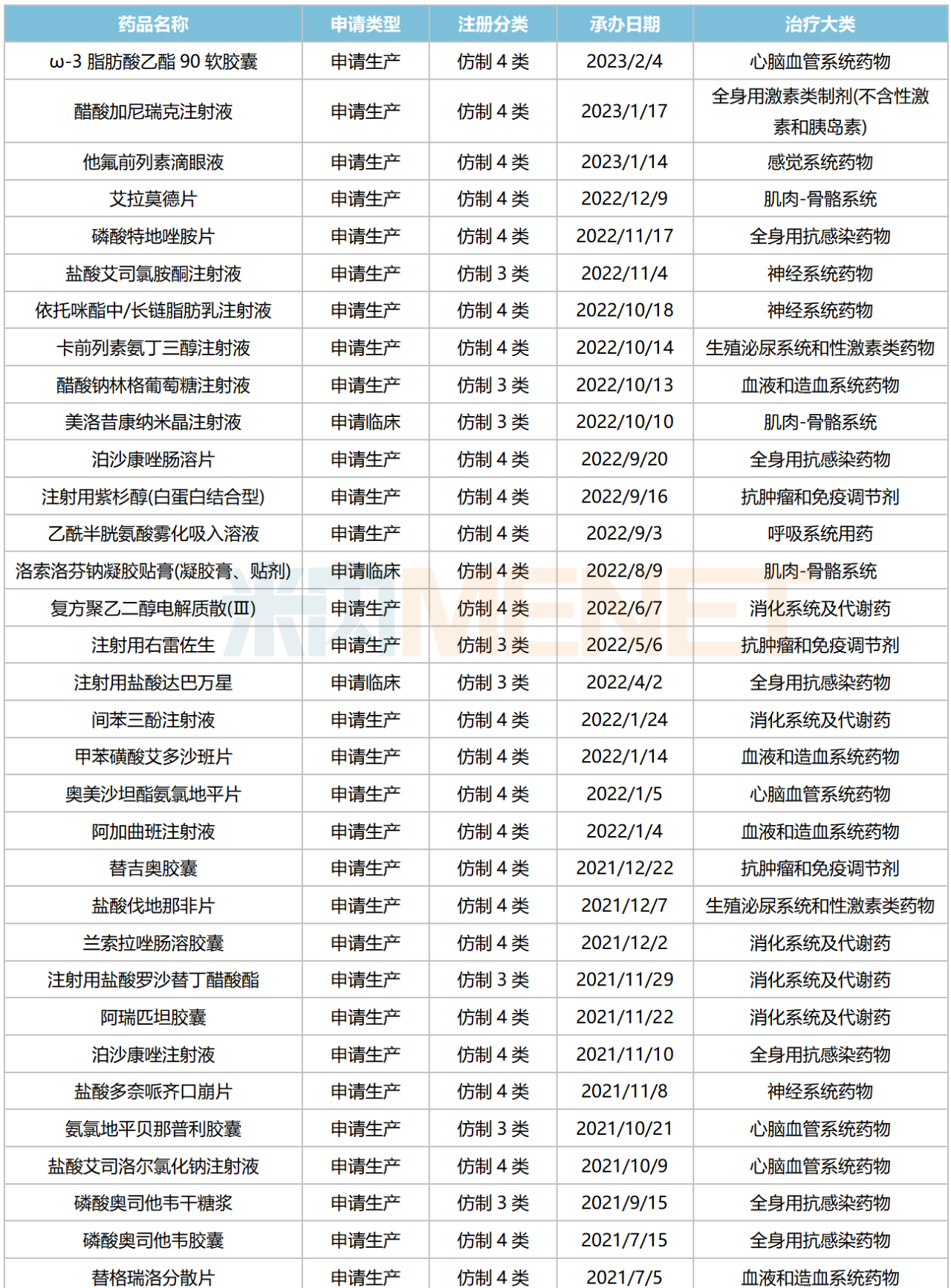 17个品种暂无首仿(含剂型首仿)获批上市,注射用盐酸达巴万星、注射用德拉沙星、替格瑞洛分散片、美洛昔康纳米晶注射液、磷酸奥司他韦干糖浆、甲磺酸沙芬酰胺片、雷诺嗪缓释片、富马酸卢帕他定口服溶液、氨氯地平贝那普利胶囊、醋酸钠林格葡萄糖注射液等品种由扬子江药业首家或独家以新分类申报。