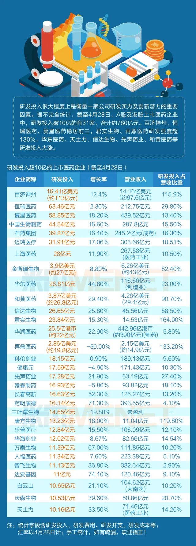 31家药企研发投入超10亿,百济、恒瑞、石药、华东、天士力...