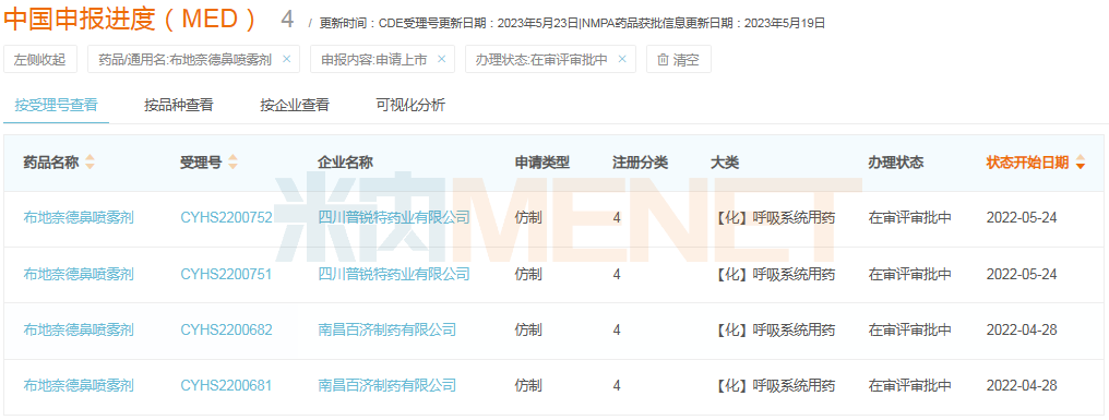 布地奈德为吸入剂大品种,布地奈德鼻喷雾剂为其第二大畅销制剂。近年来该药在中国零售药店终端的销售规模逐年扩容,2022年已突破3亿元,其中网上药店销售增幅高达102%,市场潜力十足。目前,布地奈德鼻喷雾剂仅有阿斯利康、台湾海默尼药业拥有生产批文,南昌百济制药、四川普锐特药业2家企业报产在审。对于独家或竞争格局较缓和的“处转非”产品来说,零售药店终端有望成为其销售额增长的一大利器。