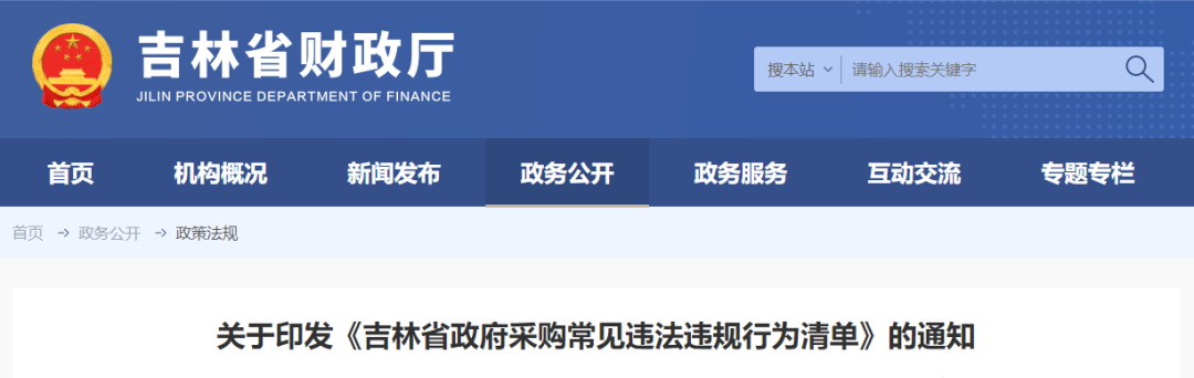 此前,吉林省财政厅发布了《吉林省政府采购常见违法违规行为清单》(以下简称《行为清单》)。