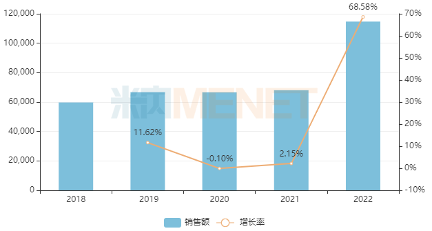小柴胡颗粒属于纯中药制剂,为国家医保甲类、OTC甲类品种,具有解表散热、疏肝和胃的功效,可用于寒热往来、胸胁苦满、心烦喜吐、口苦咽干等。该产品2022年在中国城市实体药店终端的销售额首次突破10亿元,增速再创新高,达68.58%,在感冒中成药产品排名中,由2020年的第六位上升至2022年的第三位。