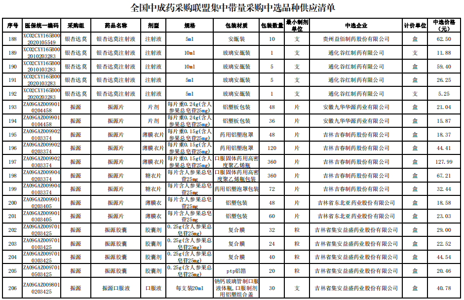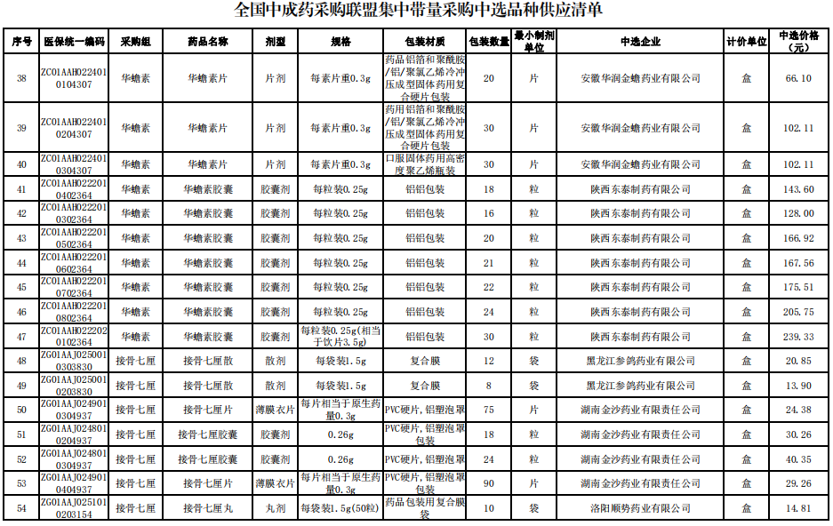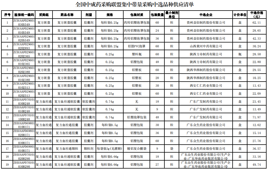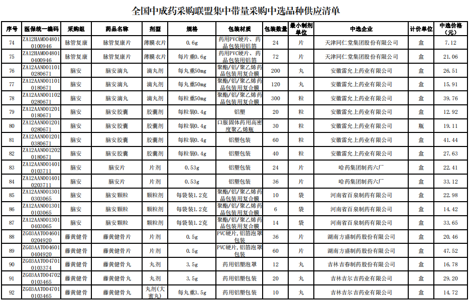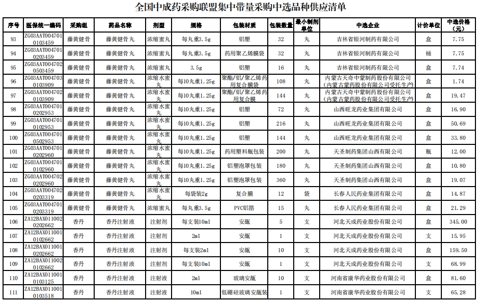 7月16日,全国中成药采购联盟集中带量采购中选品种供应清单公布,对此前5日公布的(第4号)文件做进一步补充。