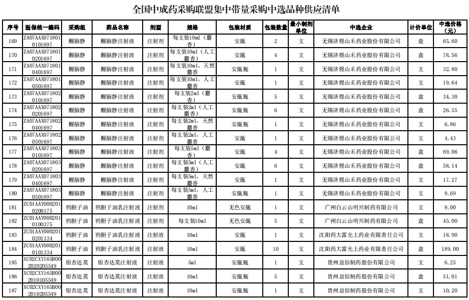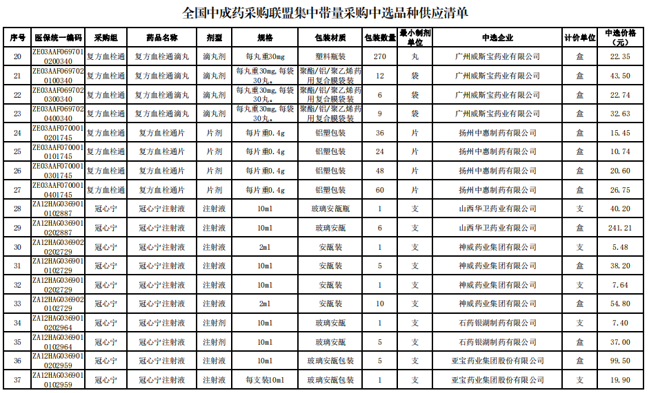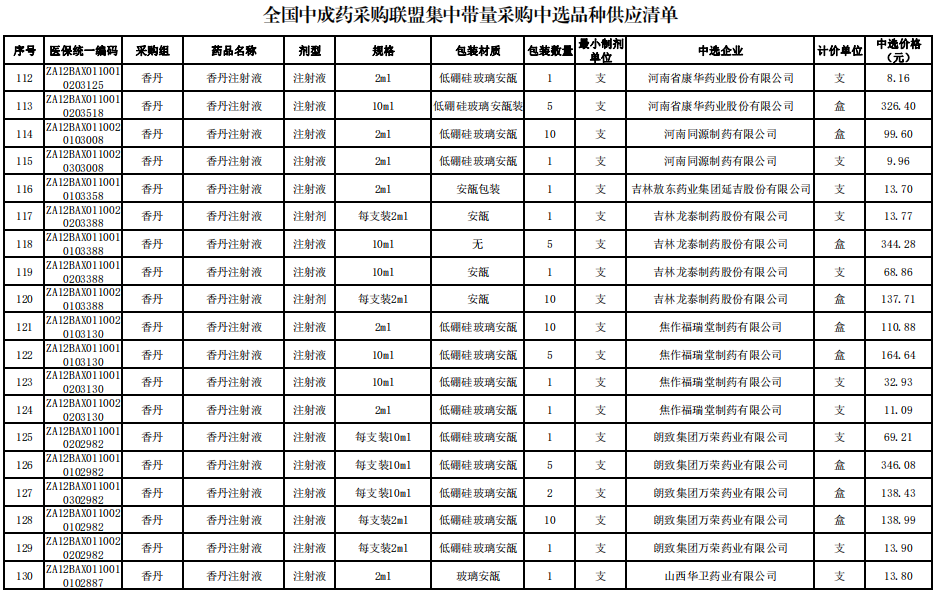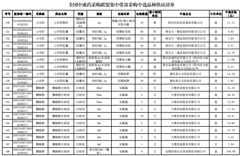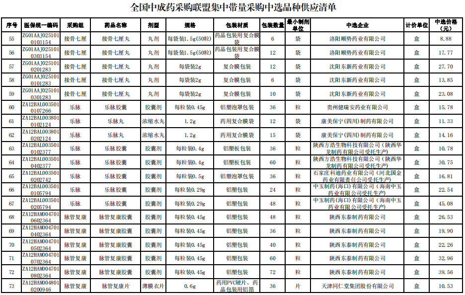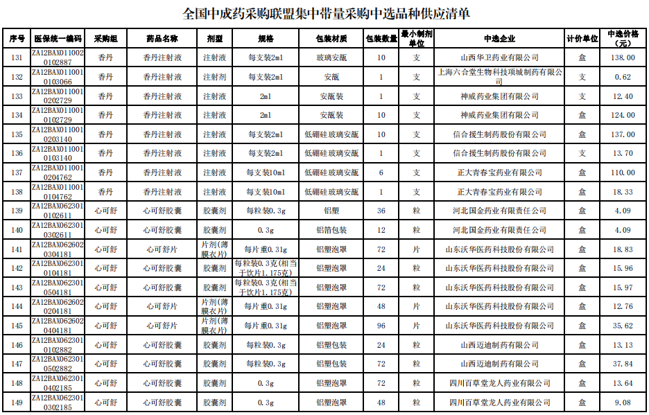 7月16日,全国中成药采购联盟集中带量采购中选品种供应清单公布,对此前5日公布的(第4号)文件做进一步补充。