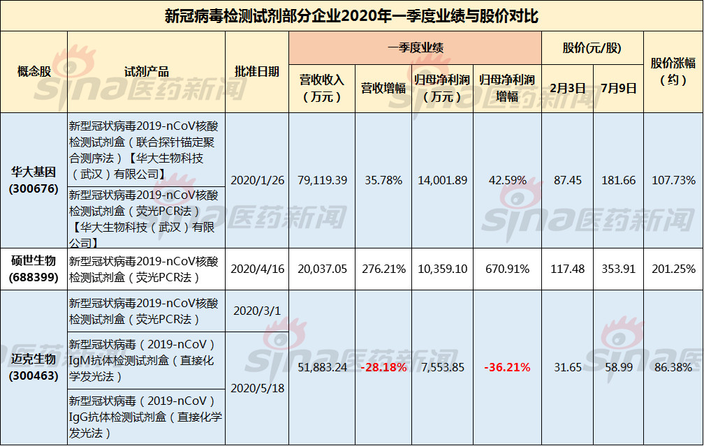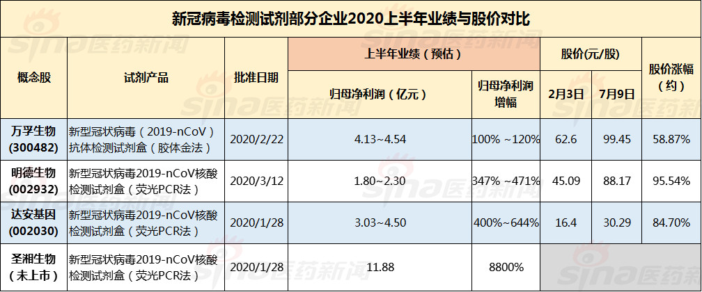 受疫情拉动需求影响,上半年,这些检测试剂公司大多业绩暴增,股价飙升。
