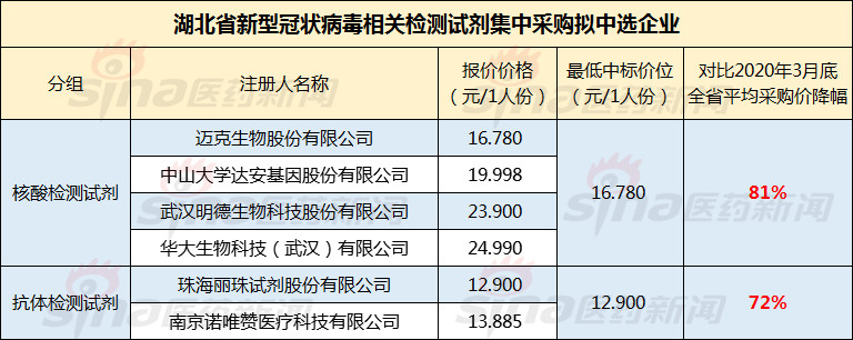 今年5月,武汉紧急通知,全市人民在十天之内完成核酸筛查!为完成武汉上千万人的检测工作,湖北省率先启动了新冠试剂集中采购,中标企业共有以下6家: