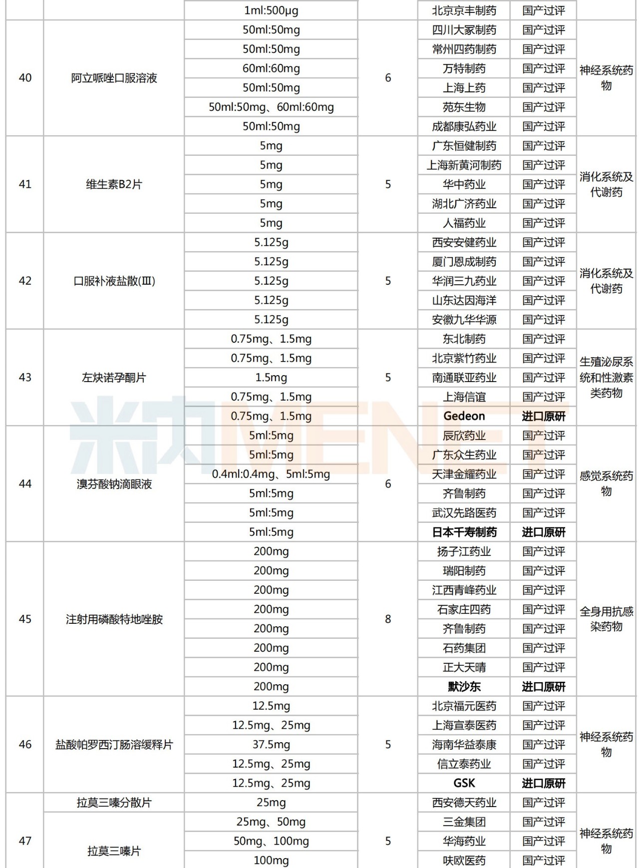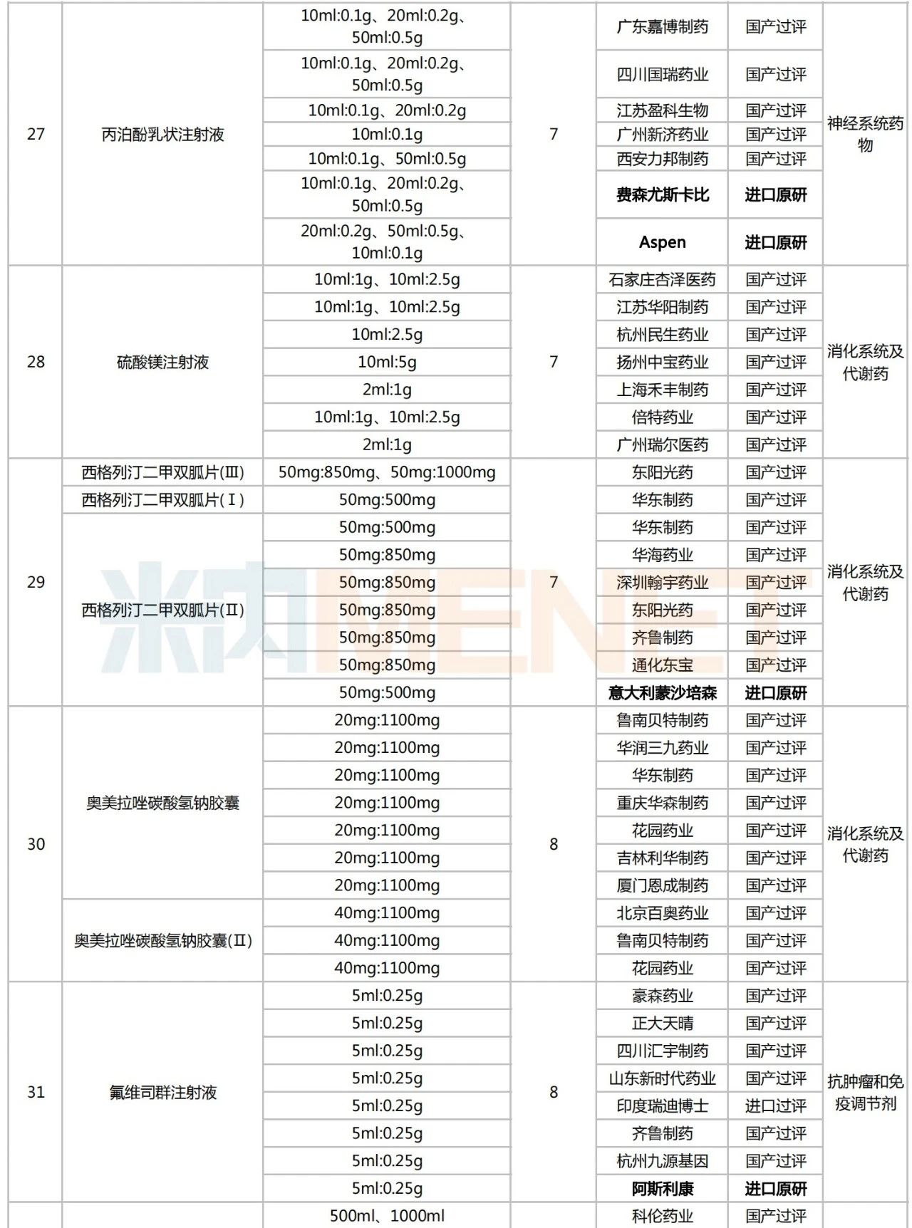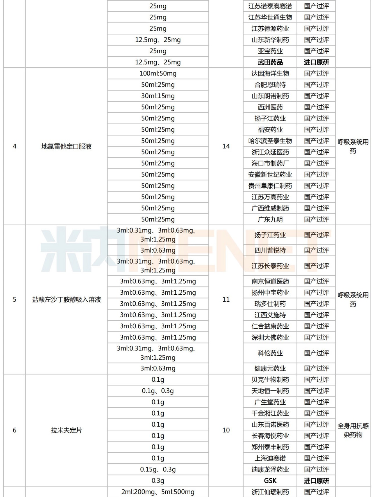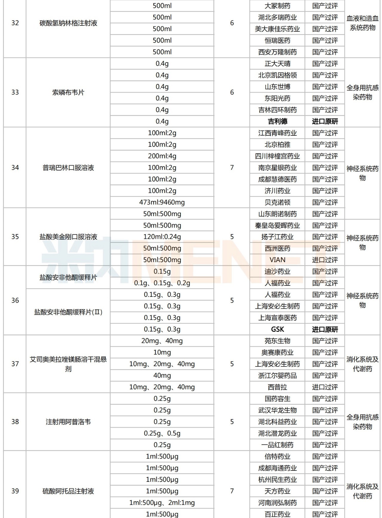 附:符合申报条件企业数≥5家且未纳入国采的化学药