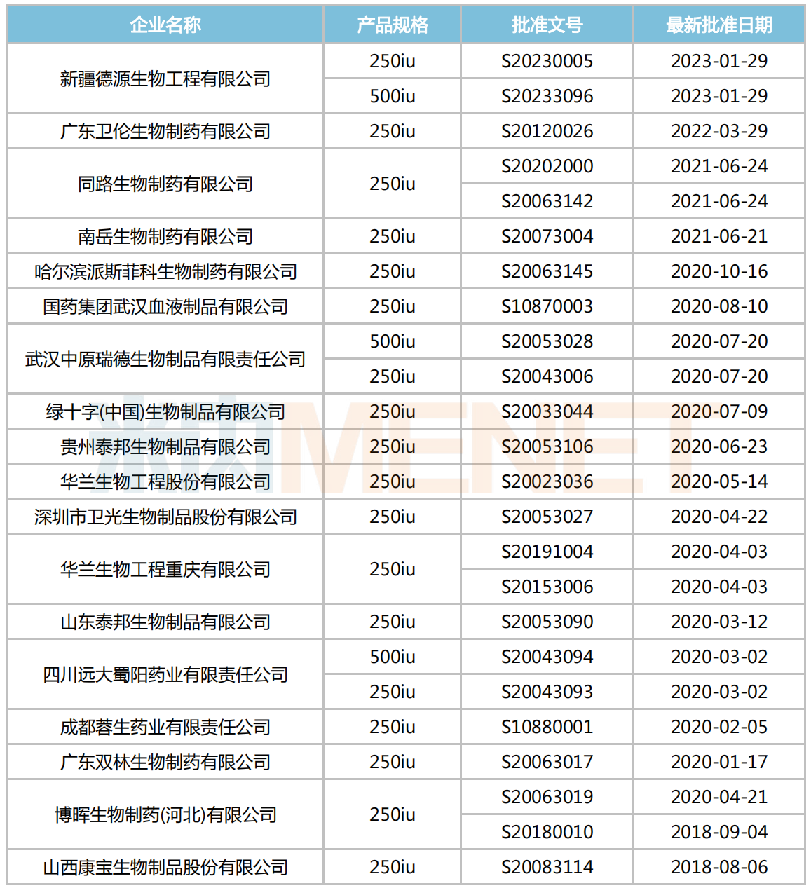 破伤风人免疫球蛋白注射剂企业获批情况