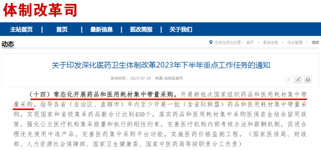 7月下旬,国家卫健委印发“关于深化医药卫生体制改革2023年下半年重点工作任务的通知”,其中明确提到开展新批次国家集采等。这意味着第九批国采有望在年内启动。